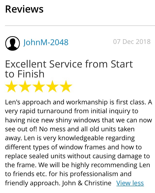 RE-GLAZE-IT is a local independent company where the survey, quotation and work will all be carried out personally by me the owner/operator Len Hefford